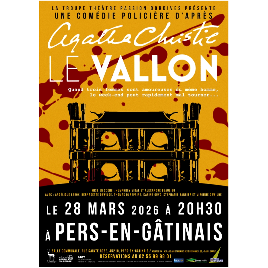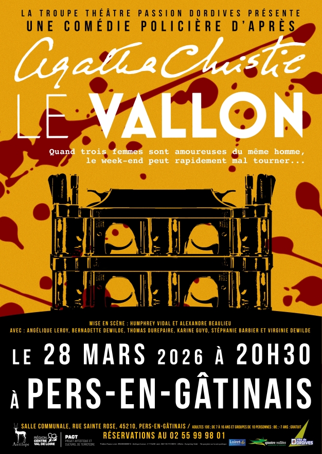 Le samedi 28 mars, la troupe Théâtre Passion de Dordives interprètera la pièce "Le Vallon" d'Agatha Christie.
